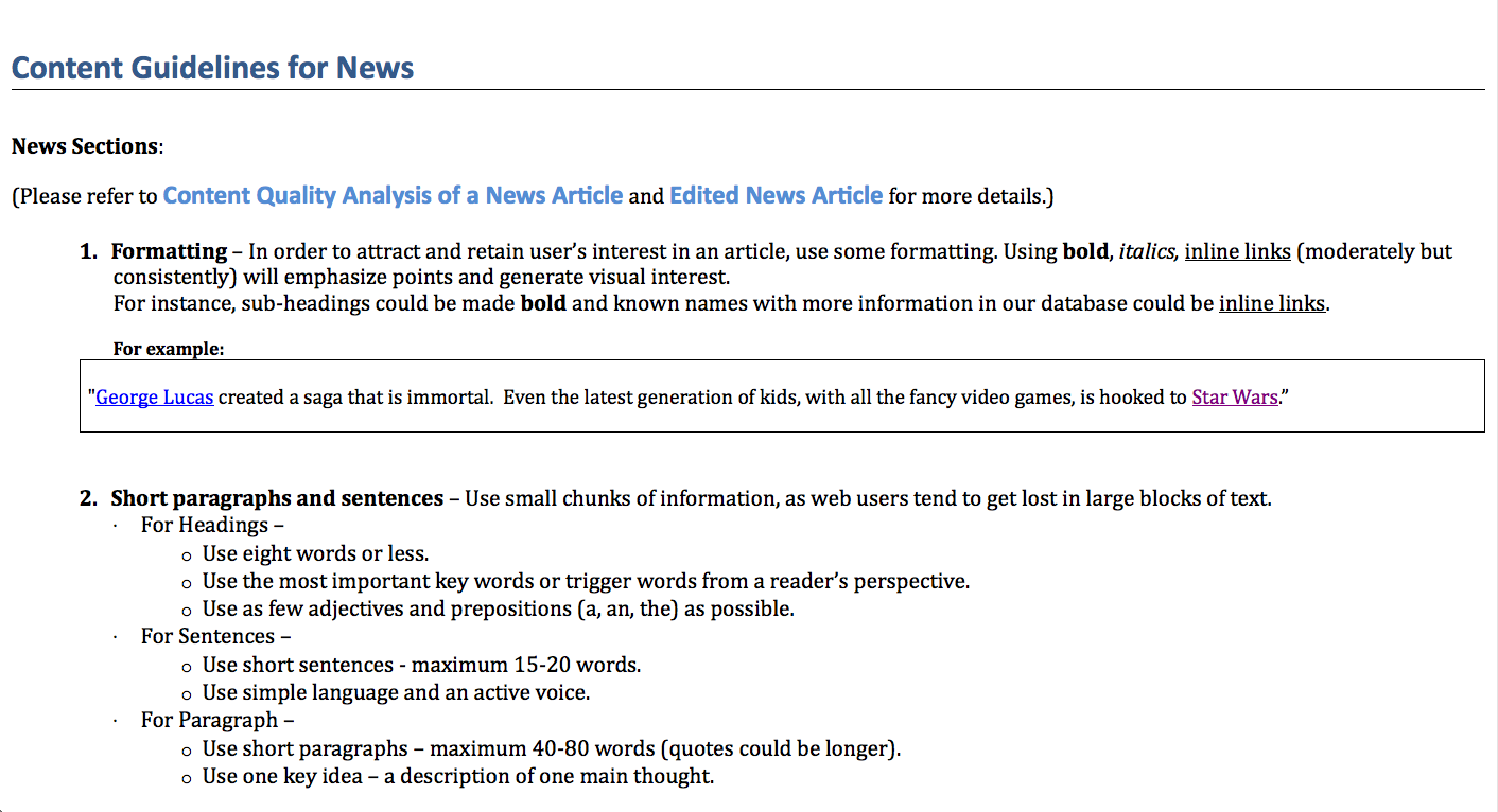 My role not only involved bar raising existing content, but analyzing how content was syndicated and managing contributions of 3rd party content providers than included agencies and celebrity writers (like sports stars). I created my own process and templates to scale across scores of writing partners and over 5 products in parallel. I architected web content through gap analysis, content inventory, content template, taxonomy, voice/tone guidelines, and iterative reviews.